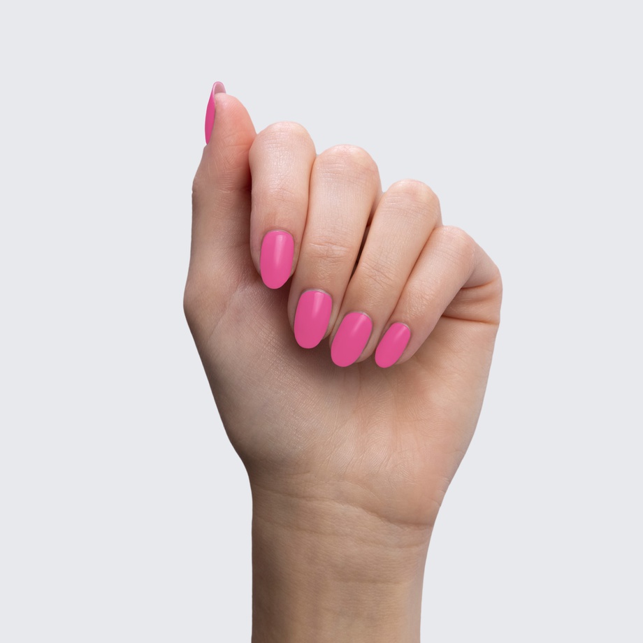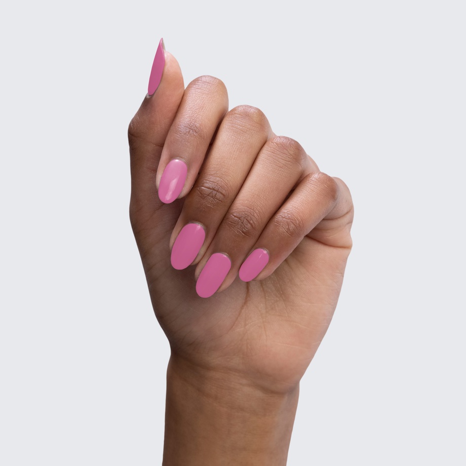 Bubble-gum pink. Muted. Opaque. Warm undertone. Light.